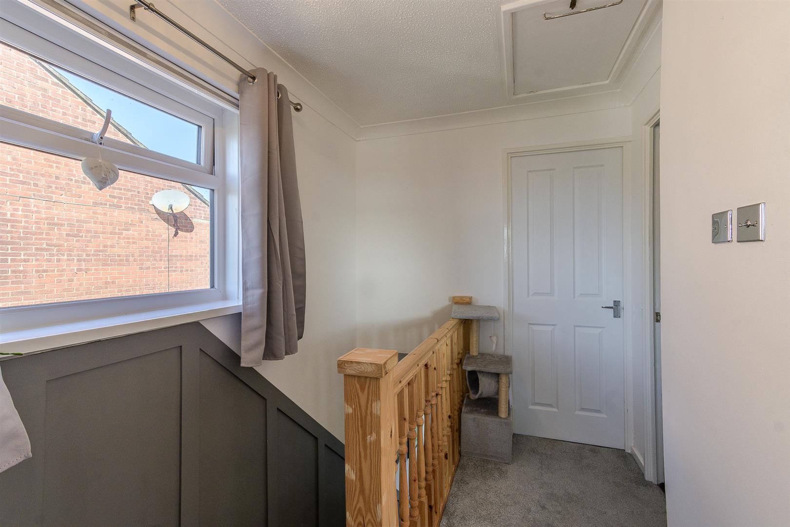 Textured ceiling with loft access and coving; plastered walls with decorative wood panelling. Fitted carpet flooring. UPVC double-glazed window overlooking side aspect. Doors to family bathroom and bedrooms.