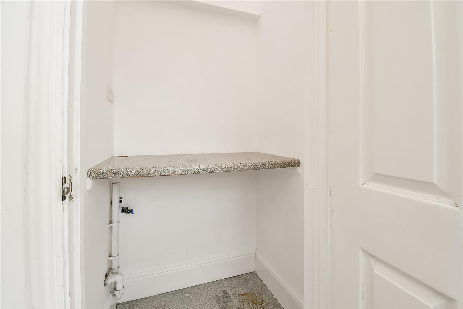 Polycarbonate roof, plastered walls. Vinyl flooring. Laminate worktop. Space for washing machine, space for tumble dryer.