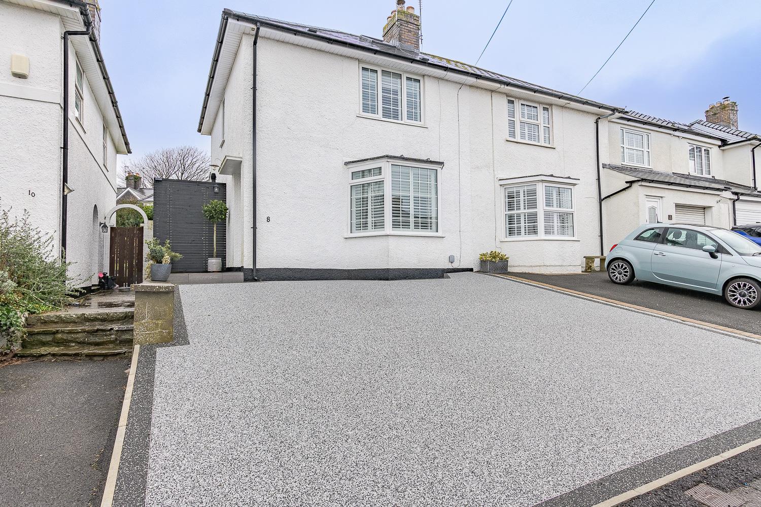 A double resin driveway suitable for ample parking, tiled steps and porch area leading to a UPVC double glazed front door. Side access to storage and rear garden. Newly installed tiled roof.