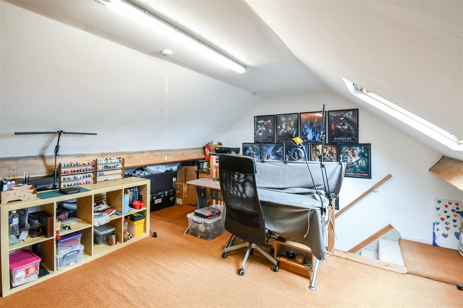 Smoothly plastered ceiling with Velux window, smoothly plastered walls. Fitted carpet flooring. Fitted carpet staircase descending to the first floor landing.
