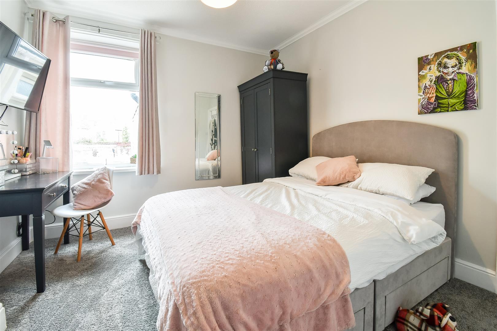 Textured ceiling with coving, smoothly plastered walls. Fitted carpet flooring. Wall mounted radiator. double glazed window to the rear. Wood panelled door leading through to the first floor landing.