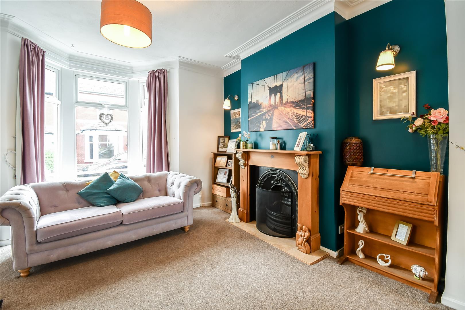 Smoothly plastered ceiling with original coving, smoothly plastered walls. Fitted carpet flooring. Wall mounted radiators. UPVC double glazed bay front window to the front. UPVC double glazed window to rear. Feature gas fire (Gas supply not connected) Wooden surround and tiled hearth. Wood framed door with glass insert leading through to the entrance hallway.