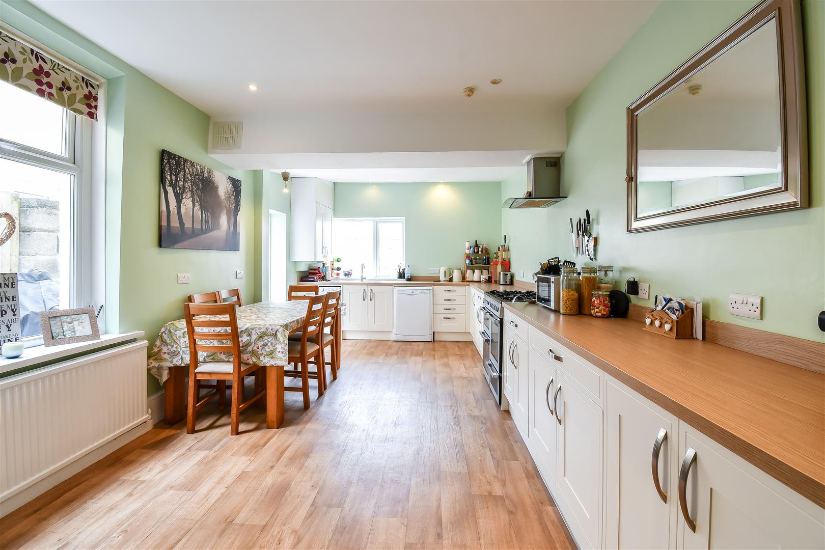 Upon entering, you are greeted by a welcoming entrance hallway with original Victorian tiled flooring that leads to a spacious living room, ideal for relaxation and entertaining. The adjoining kitchen /dining area provides a lovely setting for family meals, while the kitchen is functional and well-equipped, catering to all your culinary needs.