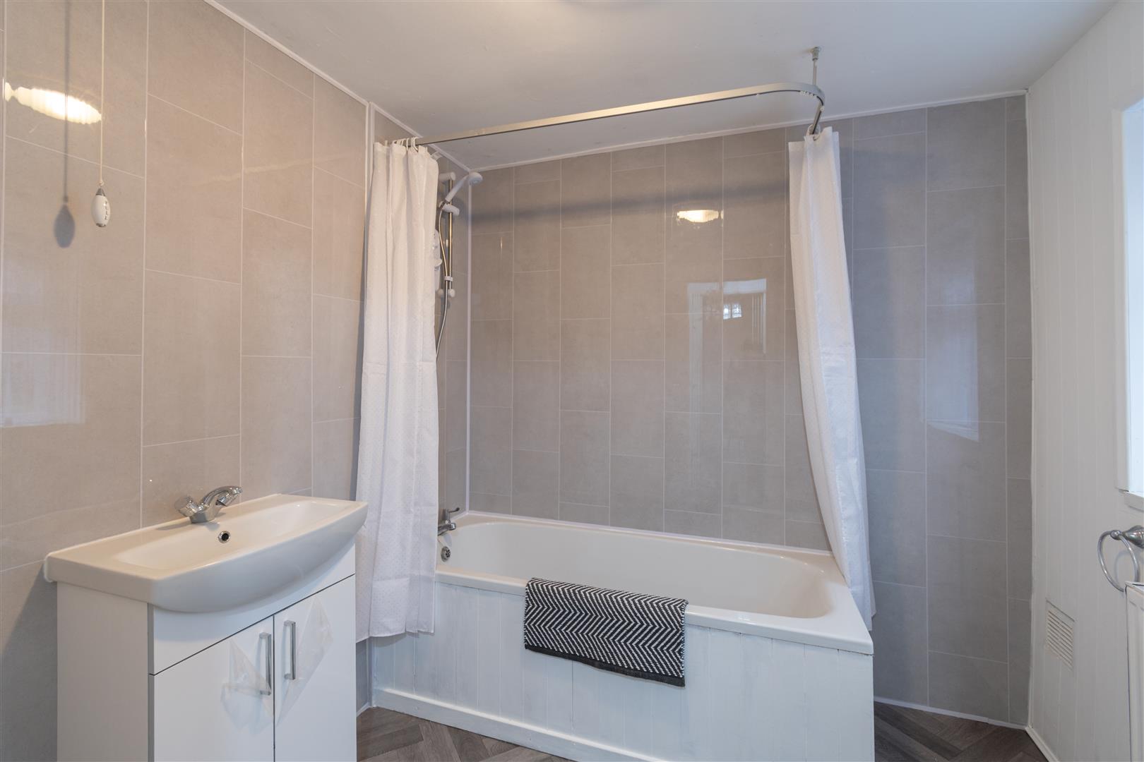 Plastered ceiling, plastered walls with tile effect Aqua panelling. Herringbone style vinyl flooring. UPVC double glazed obscured glass window to the side aspect. Bathroom comprises of bath with mixer tap and electric shower over. Shower rail with curtain. Wall mounted radiator. Toilet. Vanity wash hand basin with storage under. Radiator.
