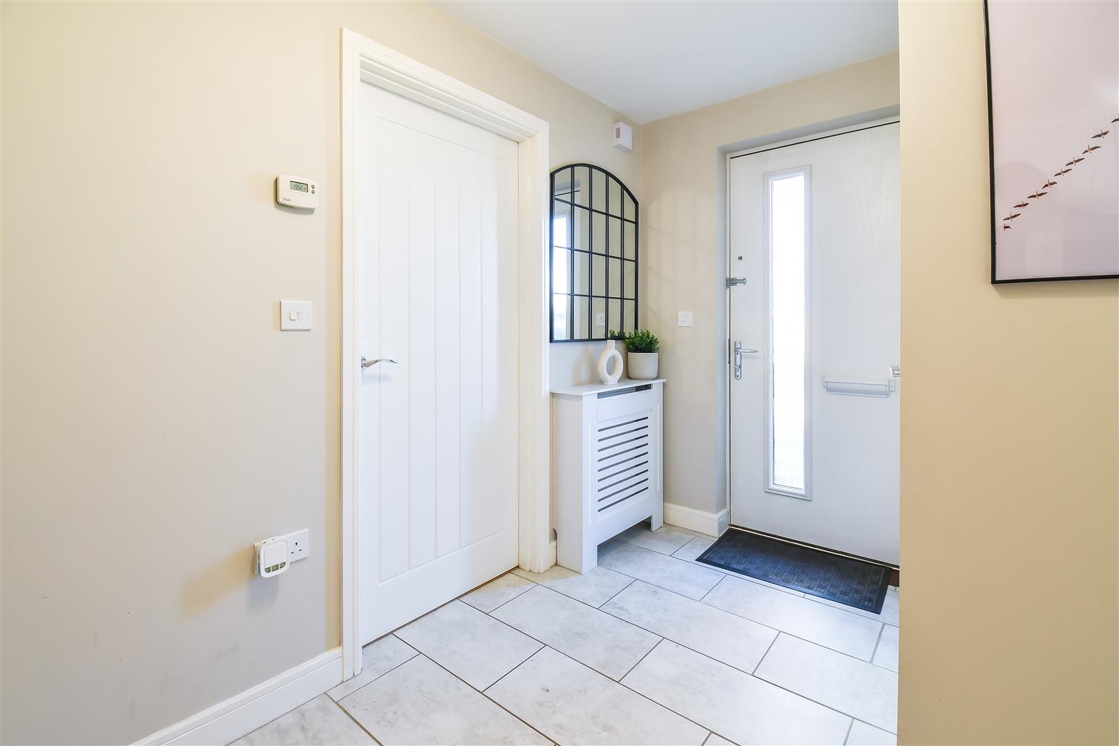 Smoothly plastered ceiling, smoothly plastered walls. Ceramic tiled flooring. Wall mounted radiator. Fitted carpet staircase leading to the first floor. Wood framed doors leading to the living room, Kitchen dining and W.C Cloakroom. Access to storage. Composite front door leading to the front.