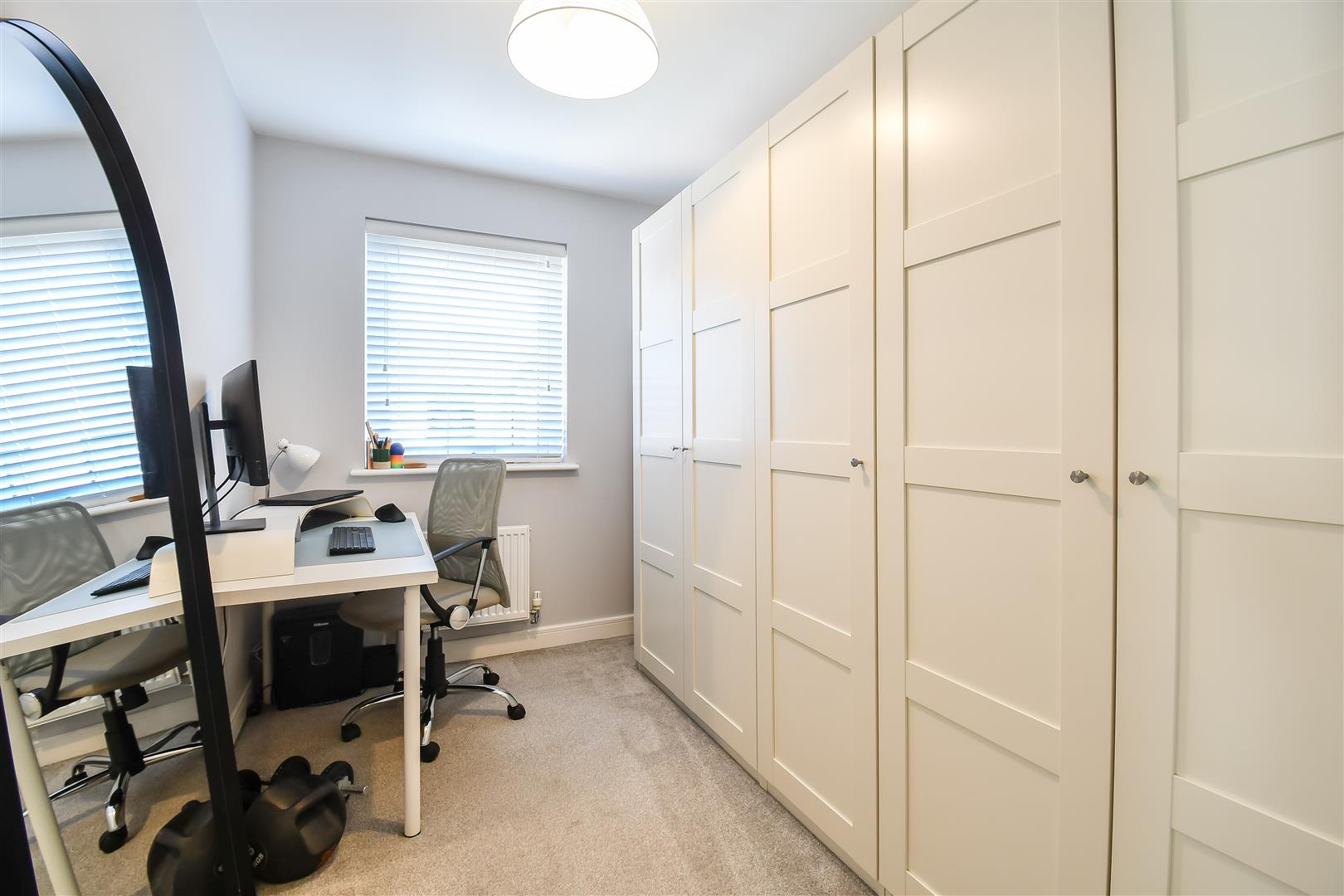 Smoothly plastered ceiling, smoothly plastered walls. Fitted carpet flooring. Wall mounted radiator. UPVC double glazed window to the rear elevation with views over the rear garden. Wood panelled door leading to the first floor landing.