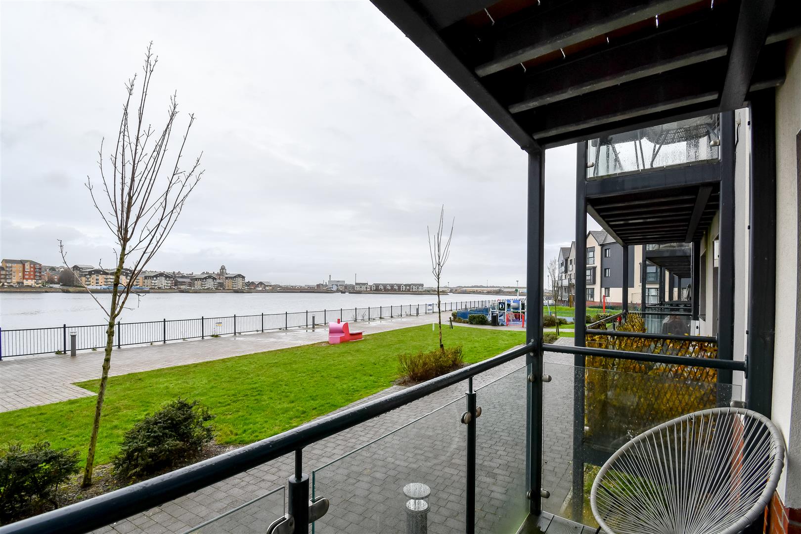 Briefly comprising:- To the ground floor:- entrance hallway, kitchen /dining area, living room with French doors opening to a balcony overlooking the water front. W.C Cloakroom. Stairs rising, To the first floor:- Lounge (or Second bedroom) with continuation of water views with French doors opening onto a second balcony, family bathroom and bedroom four. To the second floor: Master bedroom with en-suite shower room, and Juliette balcony with water views, and finally bedroom three. To the front two allocated parking bays, paved pathway leading to an composite front door.