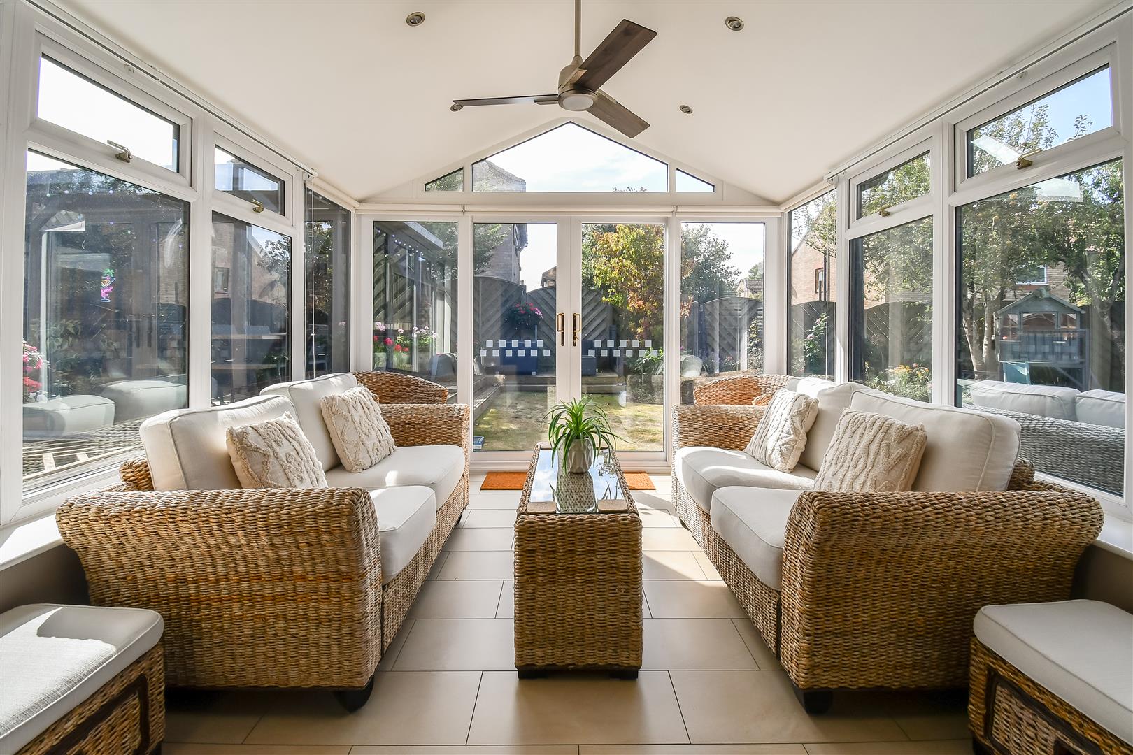 Upon entering, you are welcomed with an open plan entrance hall leading to a spacious living room that provides an inviting atmosphere for relaxation. The generously sized open plan dining room is perfect for entertaining guests, Spacious Kitchen / breakfast featuring built in appliances. A Sitting room with through opening to the sun room, with its expansive windows overlooking the beautifully landscaped rear garden, is a delightful space to enjoy the natural light and serene views. The sun room also features underfloor heating, adding an extra touch of comfort. Additionally, a large walk in larder and under stairs storage. A W.C cloakroom enhance the practicality of the living space.