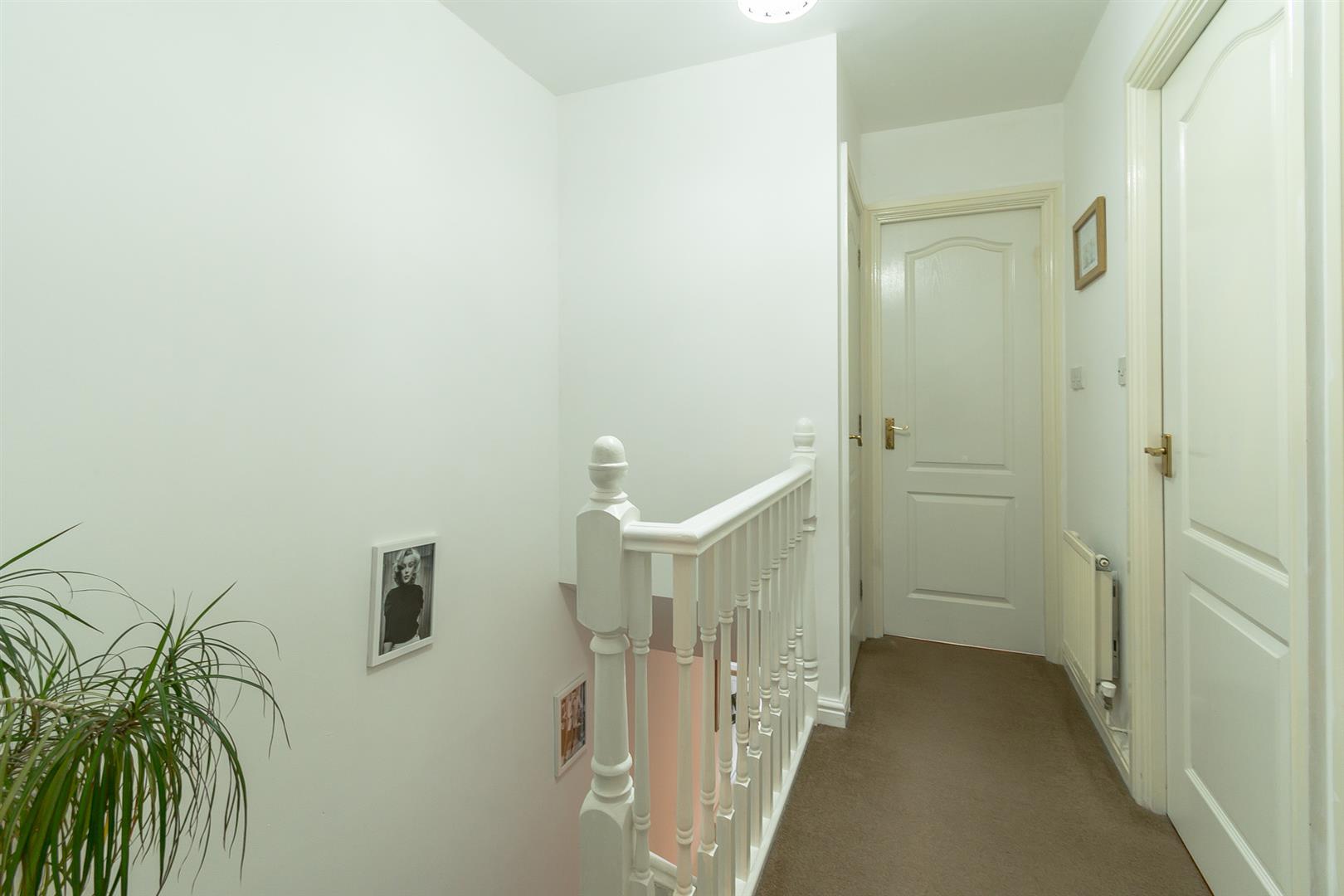 Smoothly plastered ceiling with loft access, smoothly plastered walls. Fitted carpet flooring. Fitted carpet staircase rising from the ground floor. Wall mounted radiator. Wood panelled doors leading to bedrooms one, two and bedroom three. A further wood panelled door leading to the family bathroom. Access to over stairs storage.