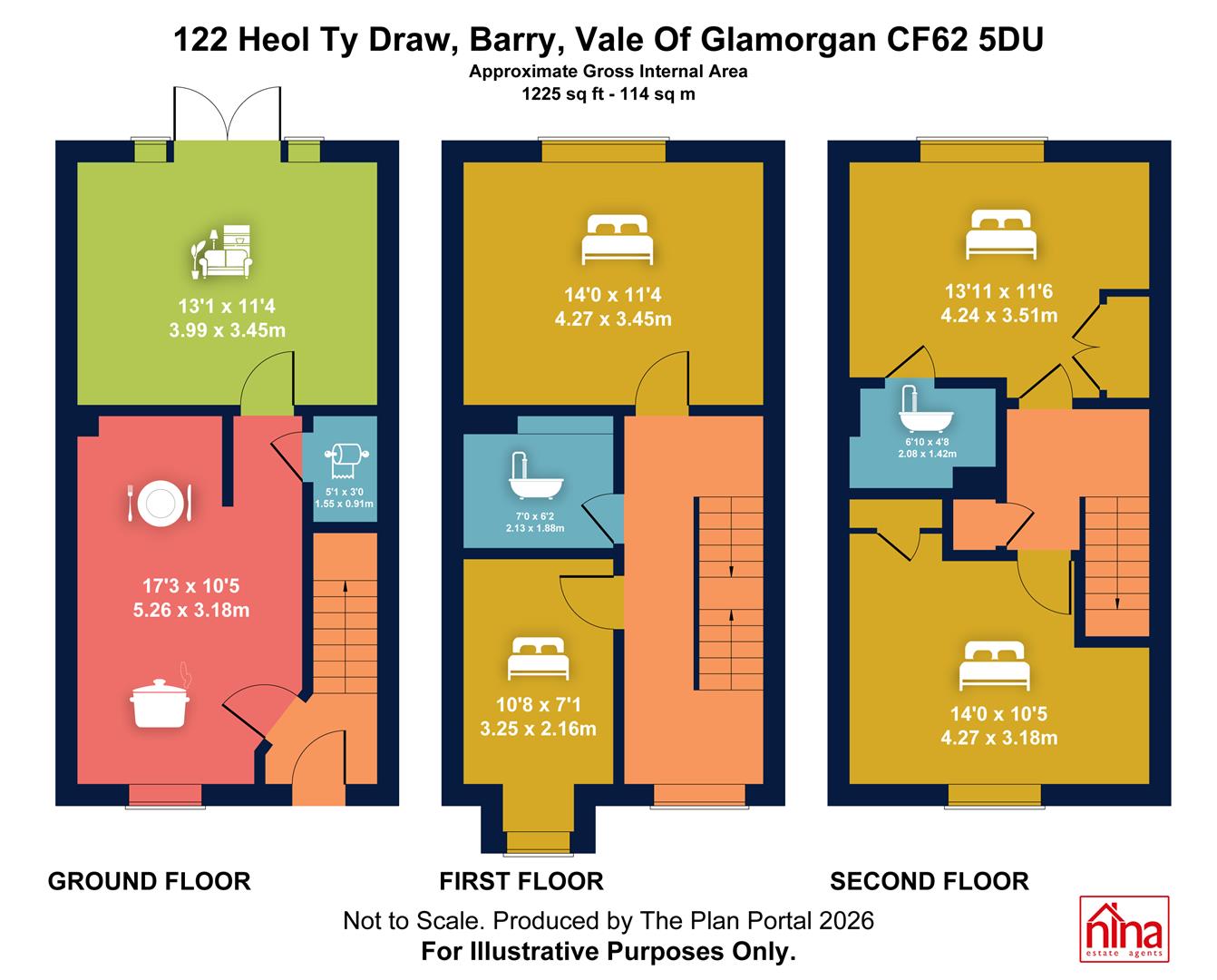 Spread over three thoughtfully designed floors, this home boasts a dual-aspect layout that enhances natural light throughout. The ground floor welcomes you with a contemporary kitchen featuring a dining area, perfect for family meals. A cosy living room, complete with French doors, opens onto a beautifully enclosed rear garden, creating a seamless indoor-outdoor living experience. Additionally, a convenient W.C. cloakroom is located on this level.