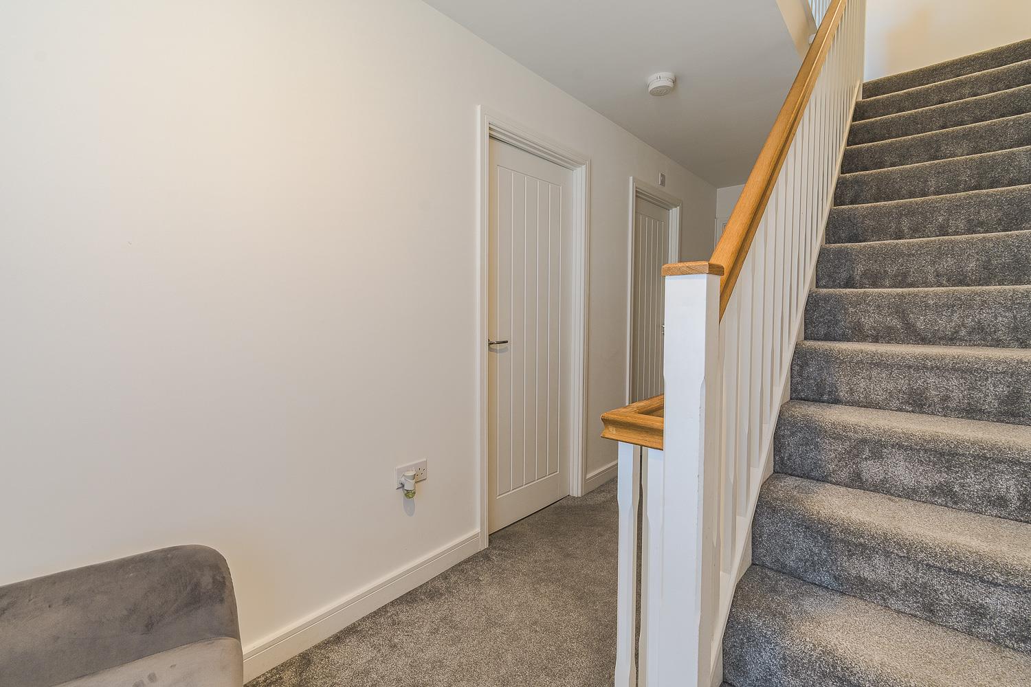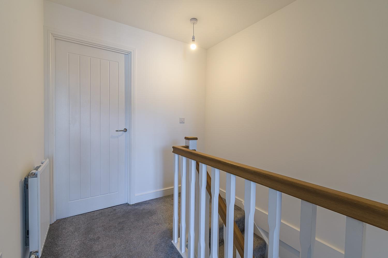 Smoothly plastered ceiling, smoothly plastered walls. Fitted carpet flooring. Fitted carpet staircase rising from ground floor. Wall mounted radiator. UPVC double glazed window to the front elevation. Wood panelled doors leading to bedroom two and four. A further wood panelled door leading to the family bathroom. Fitted carpet staircase rising to the second floor.