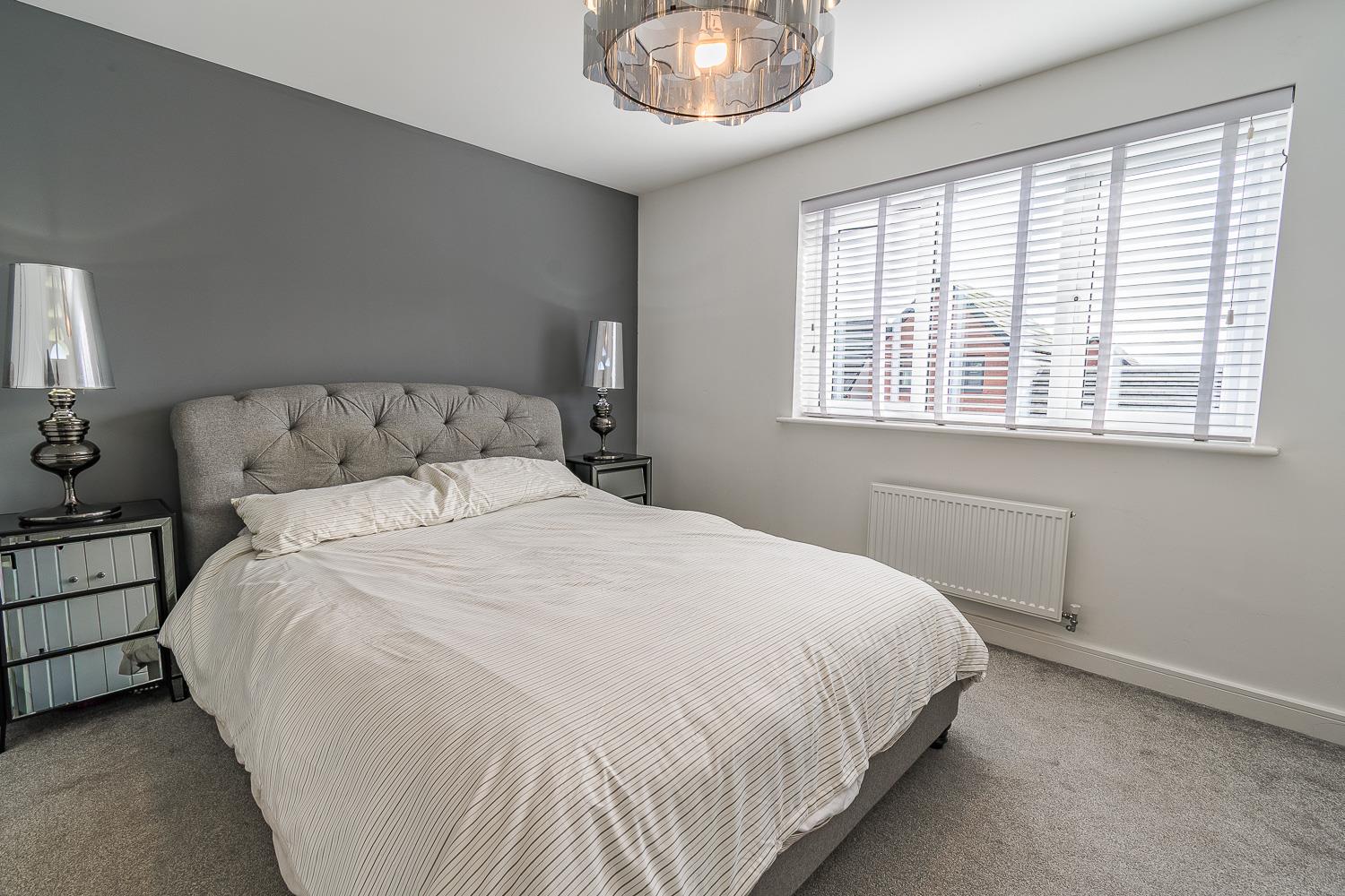 Smoothly plastered ceiling, smoothly plastered walls. Fitted carpet flooring. Wall mounted radiator. UPVC double glazed window to the rear elevation. Built-in wardrobes. Wood panelled door to en-suite. A further wood panelled door leading to the second floor landing.