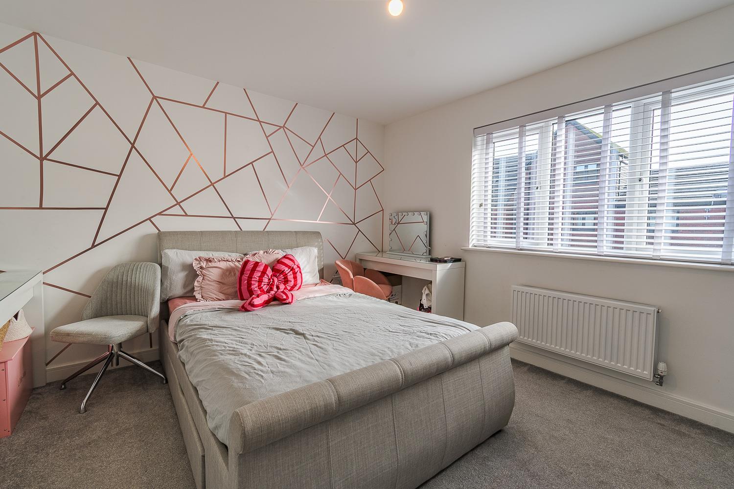 To the front of the property, you will find two allocated parking bays, complemented by a paved pathway and established shrubbery that enhances the home’s curb appeal. With UPVC double-glazed windows and gas central heating throughout, this property is not only stylish but also energy-efficient.