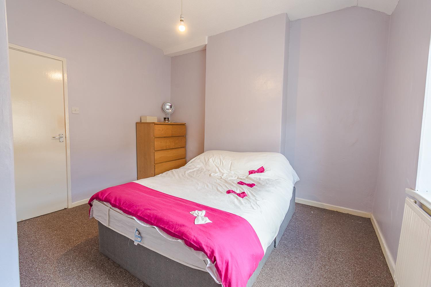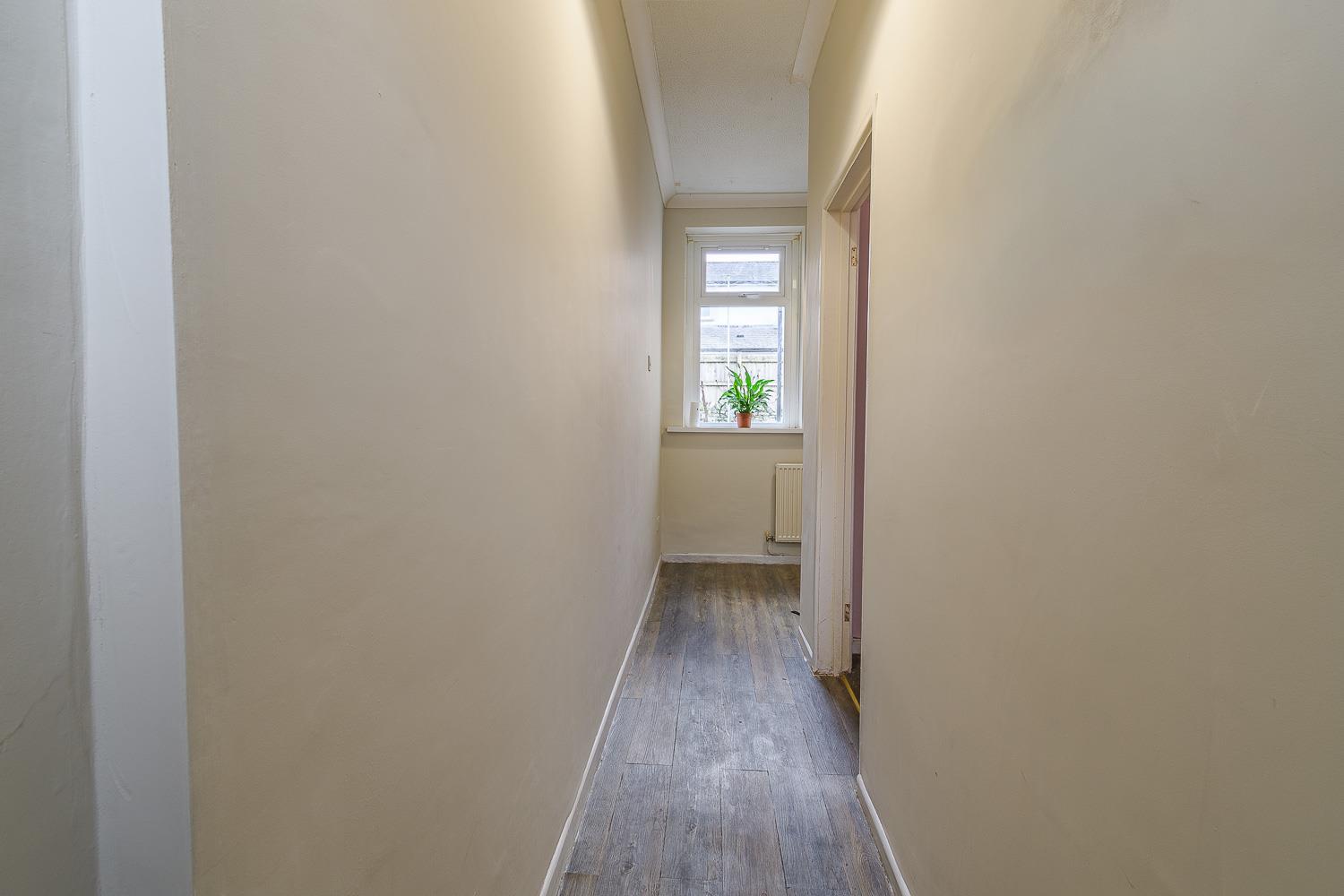 Textured ceiling, smoothly plastered walls. Fitted carpet flooring. Wall mounted radiator. UPVC double glazed window to the rear and side elevations. Wood panel door leading through to the first floor landing.