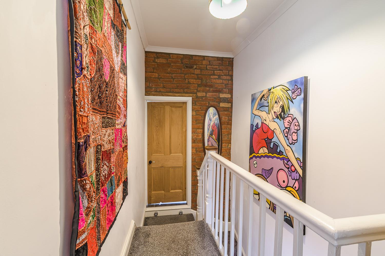 Smoothly plastered ceiling with coving, smoothly plastered walls, revelled brick feature wall. Fitted carpet split level landing. Original wood panelled doors leading to bedrooms one and two a further original wood panelled door leading to the family bathroom.