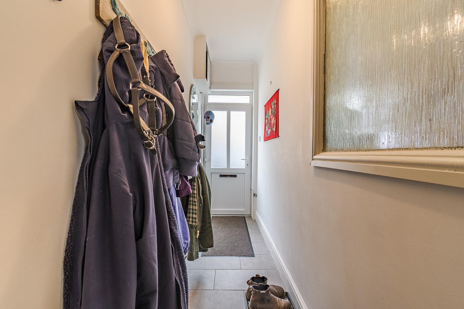 Smoothly plastered ceiling with coving, smoothly plastered walls. Ceramic tiled flooring. Wall mounted radiator. Original wood panelled door leading to entrance hallway. UPVC double glazed front door.