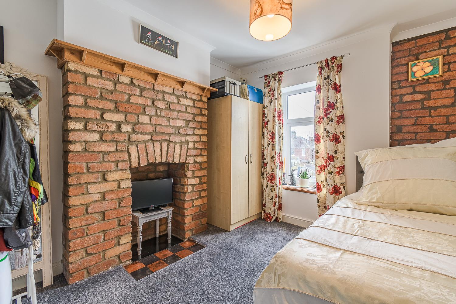 Smoothly plastered ceiling with coving, smoothly plastered walls- revelled brick feature alcove. Fitted carpet flooring. Wall mounted radiator. UPVC double glazed window to the rear. Original wood panelled door leading to the first floor landing.