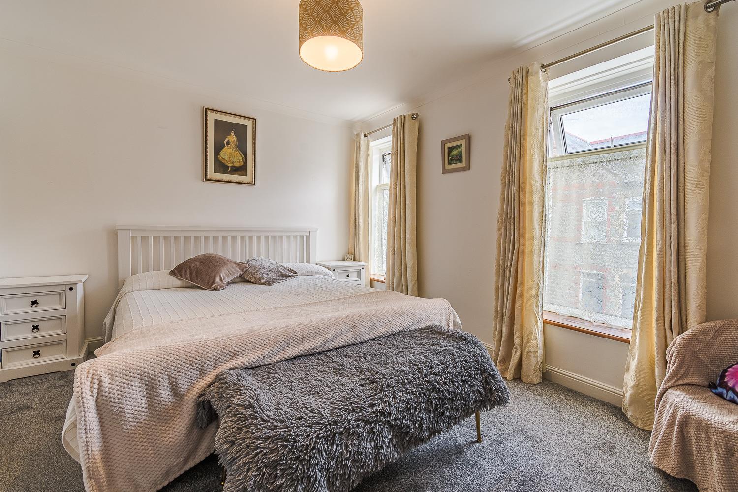 Smoothly plastered ceiling with coving, smoothly plastered walls. Fitted carpet flooring, Wall mounted radiator. UPVC double glazed windows to the front elevation. Original wood panelled door leading to the first floor landing.