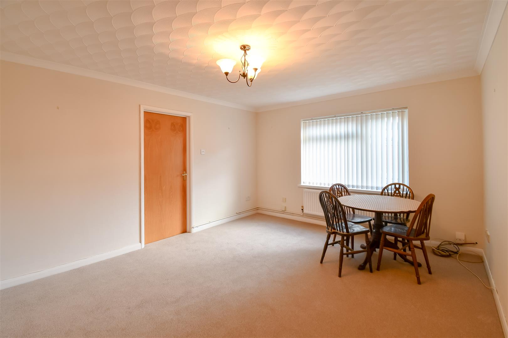 Textured ceiling with coving, plastered walls, newly fitted carpet flooring. UPVC double glazed window overlooking the front elevation. Radiator. Door to kitchen.