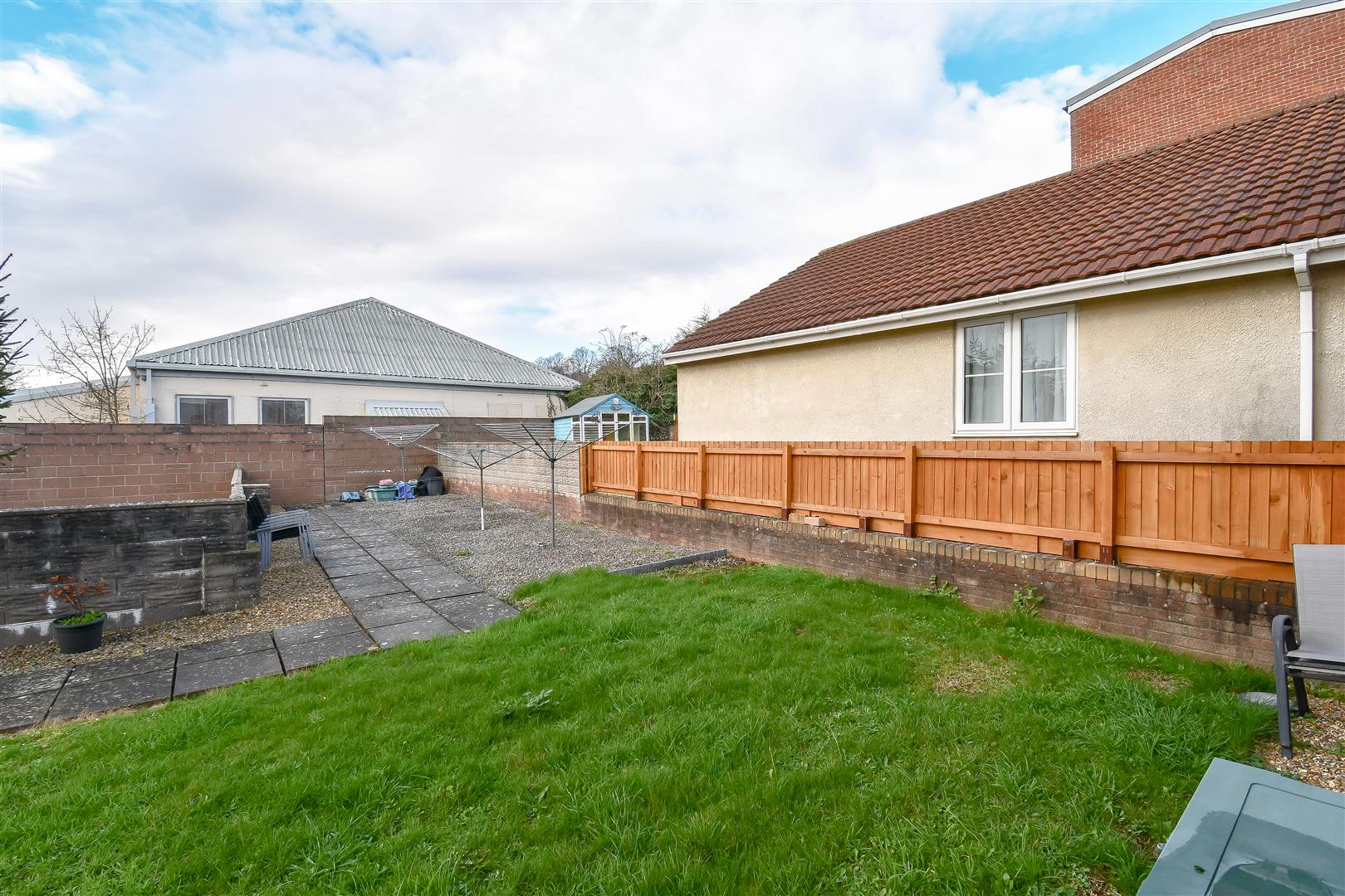 Communal shared garden with laid to lawn, paved pathways, stone chippings. Feather edged fencing with brick built walls surrounding. Access to the rear parking.