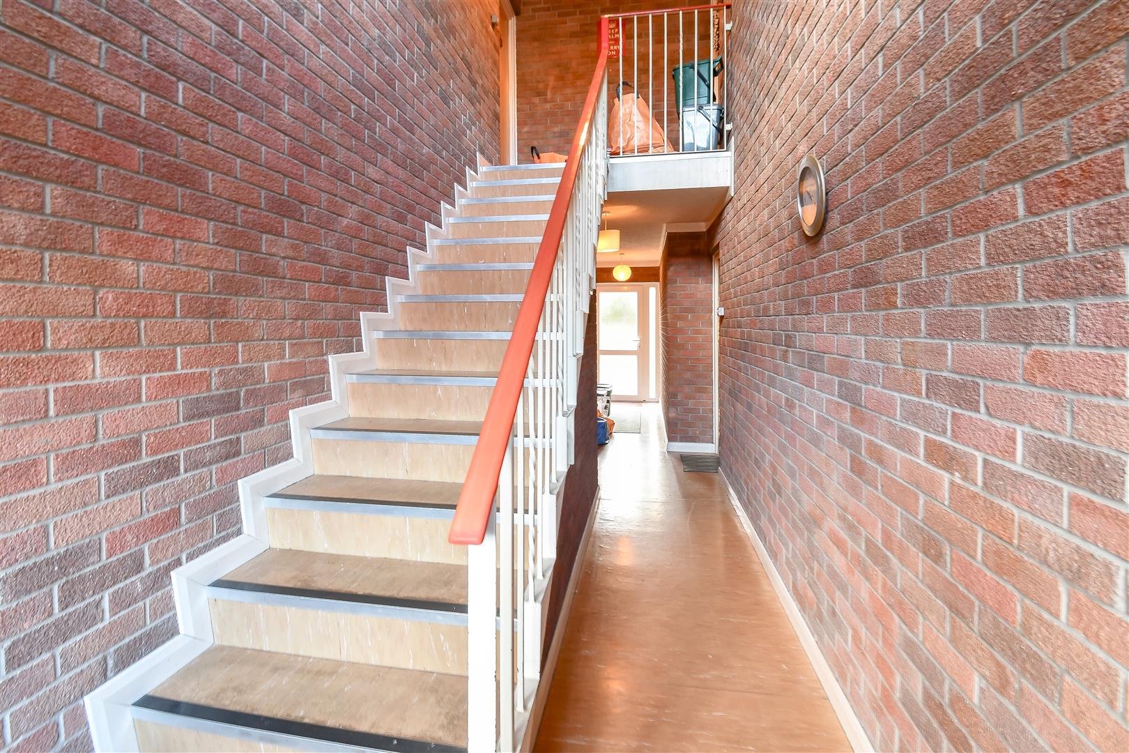 Ground floor with wooden front door opening to the entrance hallway.