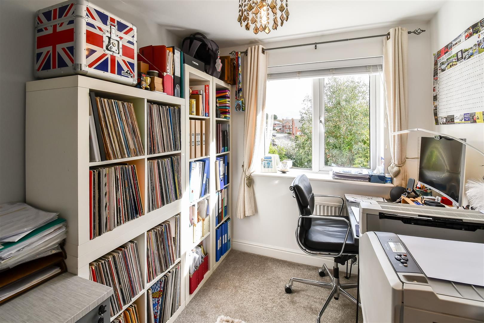 Smoothly plastered ceiling, smoothly plastered walls. Fitted carpet flooring. Wall mounted radiator. UPVC double glazed window to the rear elevation. Wood panelled door leading through to the first floor landing.