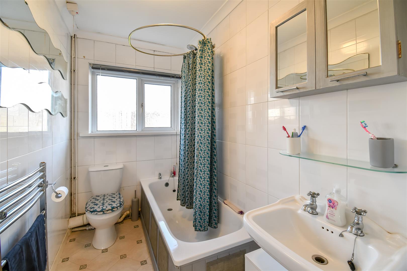 Plastered ceiling. Tiled walls. Vinyl flooring. UPVC opaque glass window overlooking the rear. Bathroom comprises of, bath with twin taps and electric shower over. Pedestal wash hand basin. Close coupled toilet. Vertical towel rail heater.
