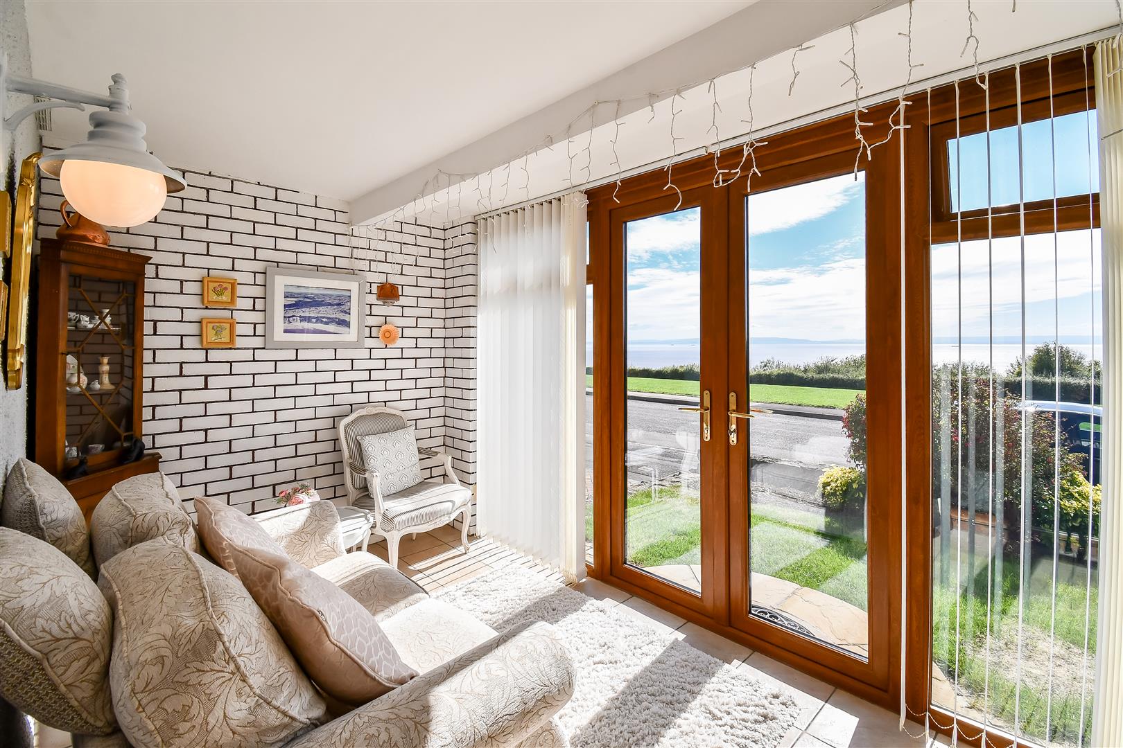 Smoothly plastered ceiling, ceramic tiled flooring. UPVC double glazed windows and French doors leading to the front garden, the sun room features far-reaching uninterrupted views across the channel and of flat holm and steep holm.