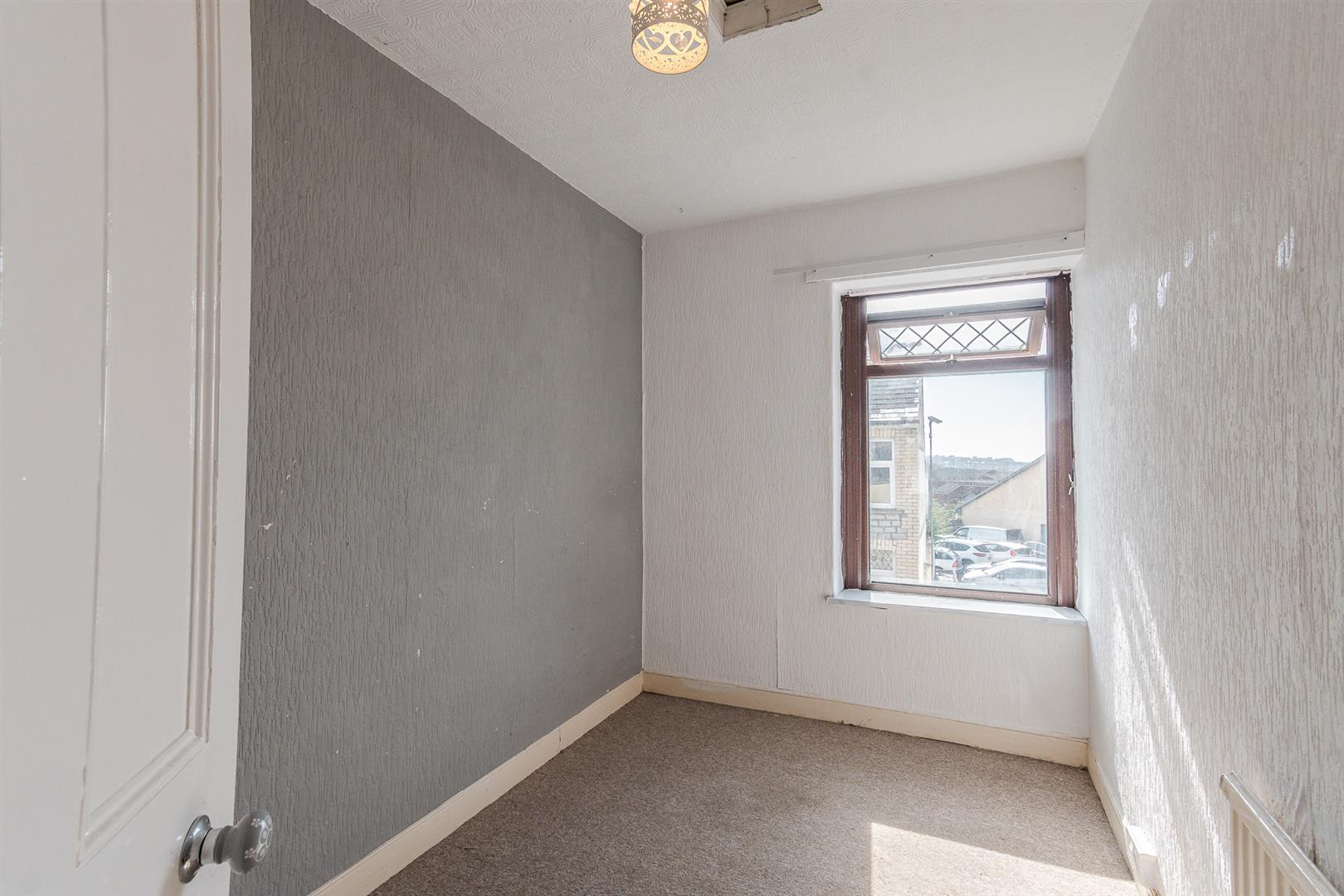 Textured ceiling, papered walls, and fitted carpet. A UPVC double-glazed window faces the front aspect, and the room is equipped with a wall-mounted radiator.