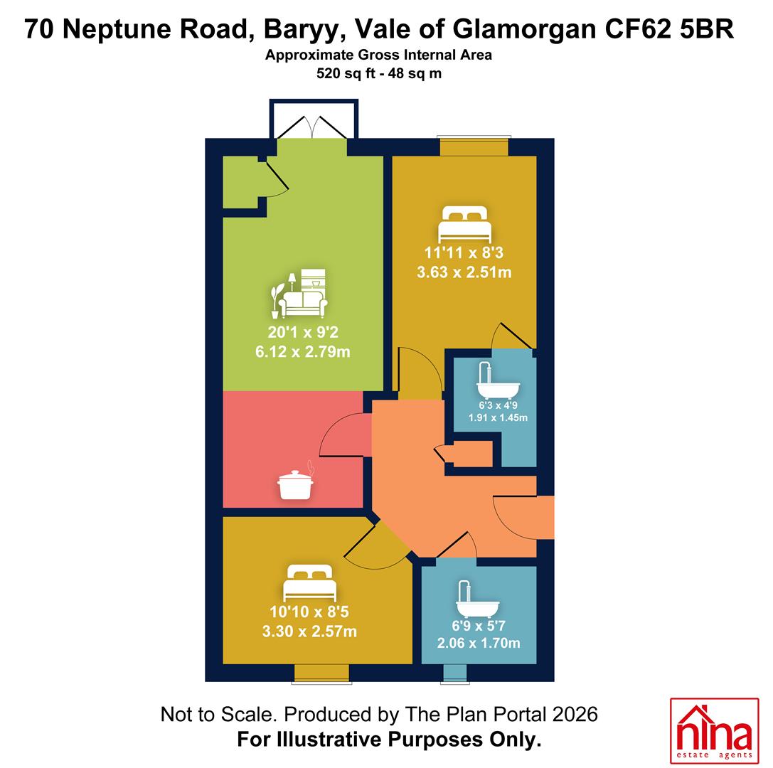 Situated on Neptune Road in the charming coastal town of Barry, this well-presented first-floor flat offers a delightful blend of modern living and waterfront views. The property features a welcoming communal hallway that leads via stairs to an inner hallway, setting the stage for the spacious open-plan lounge and kitchen area. This inviting space is enhanced by French doors that open onto a lovely Juliet balcony, perfect for enjoying the fresh sea air.