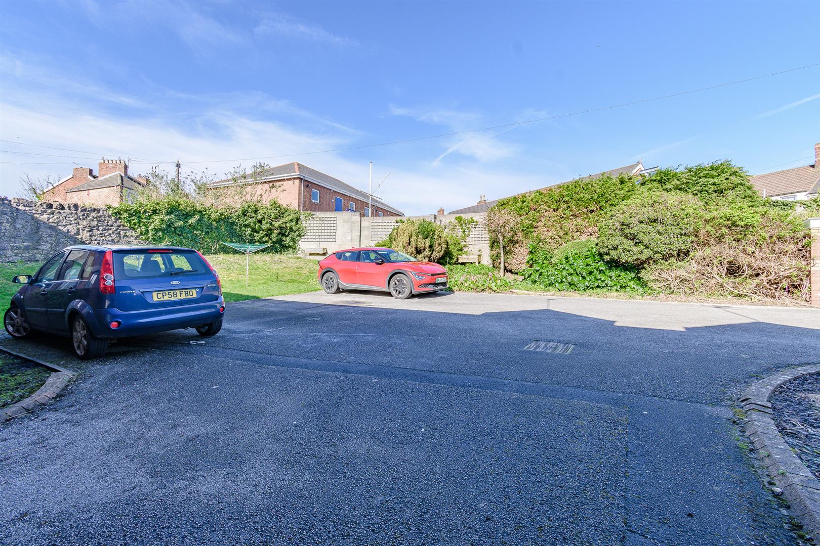 A car park with one allocated parking space, along with a refuge bin storage area and clothes drying facilities.