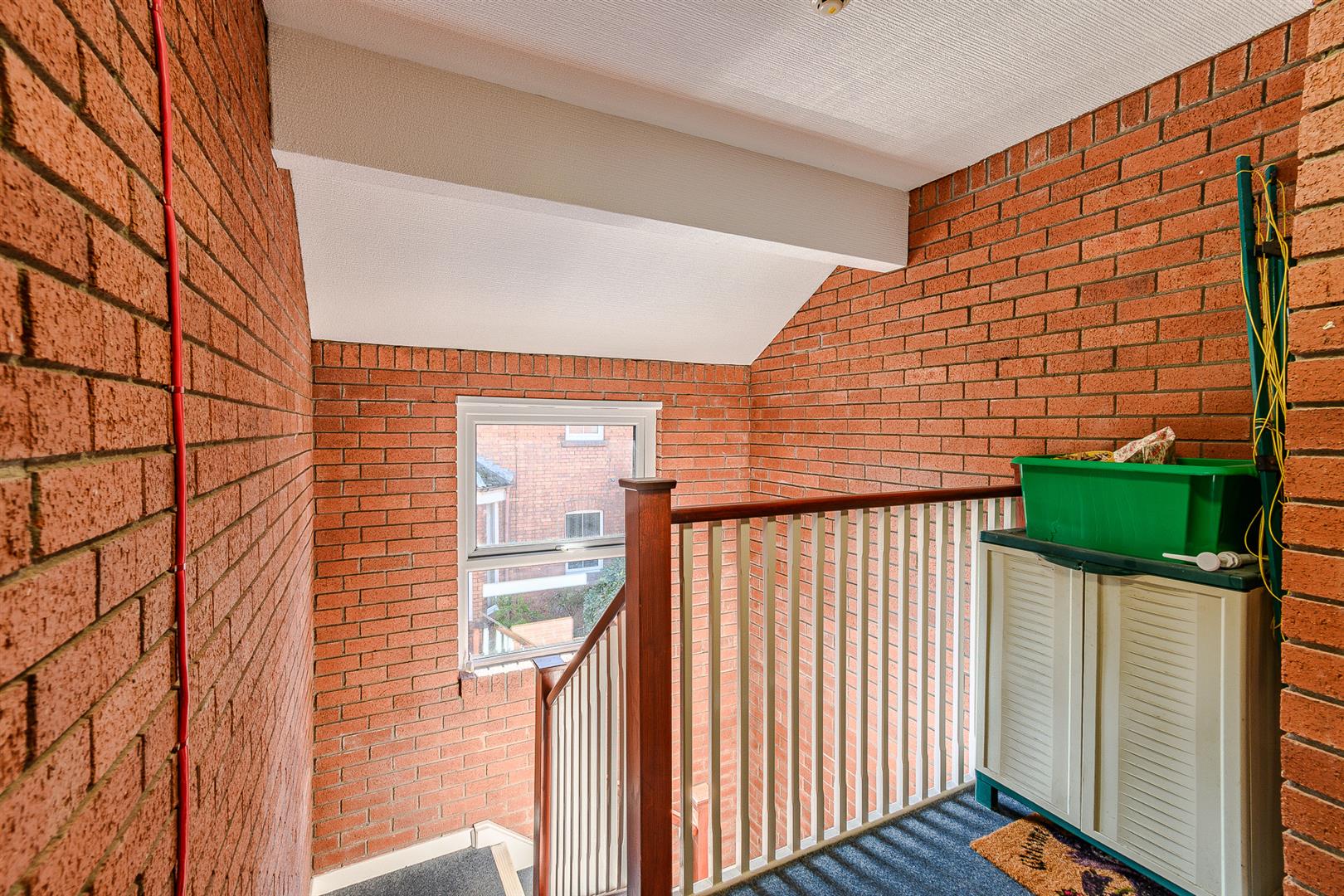 The property is accessed via a communal entrance with an intercom entry system and stairs leading to the first floor.