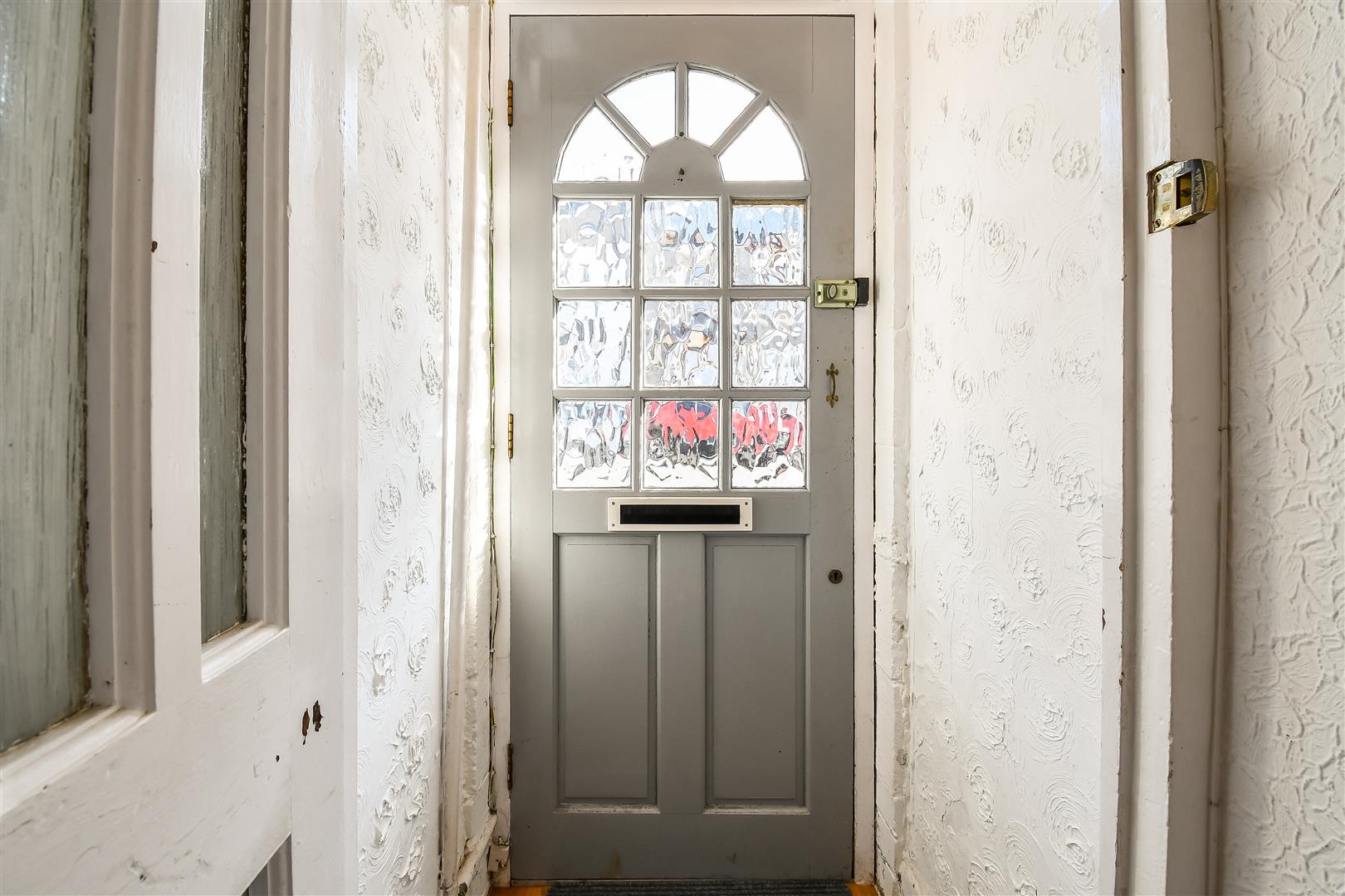 Textured ceiling with coving, papered walls. Wood flooring. Wall mounted radiator. UPVC double glazed window to the side elevation. Wooden door with obscured glass insert leading through to kitchen. Wood framed door with obscured glass insert leading through to the entrance hallway.