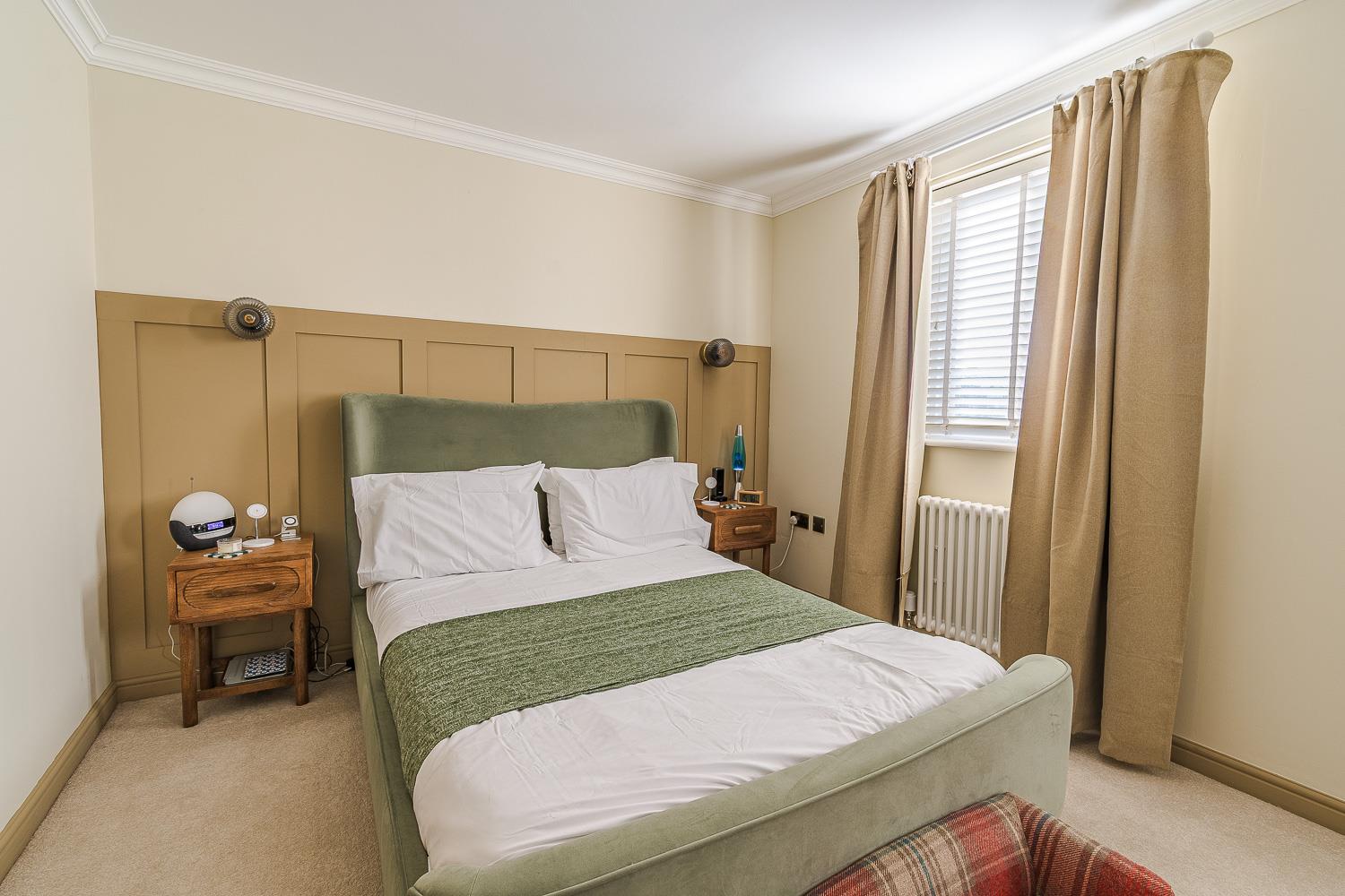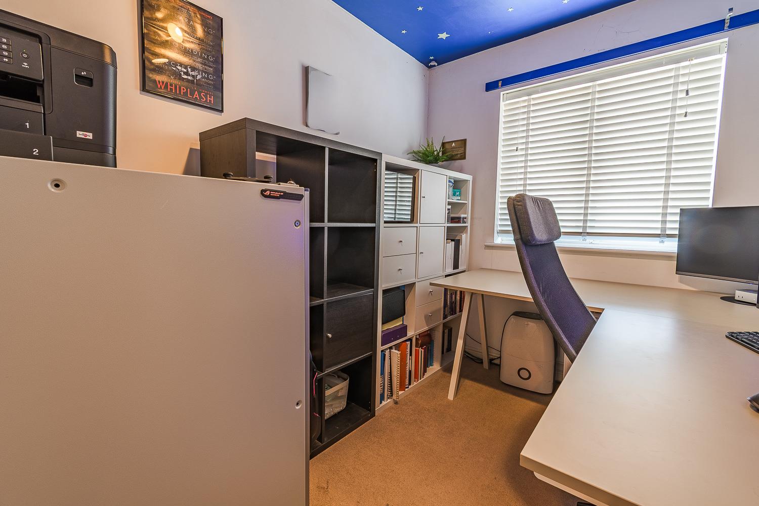 Smoothly plastered ceiling, smoothly plastered walls. Fitted carpet flooring. Wall mounted radiator. UPVC double glazed window to the rear elevation. Wood panelled door leading to the second floor landing.