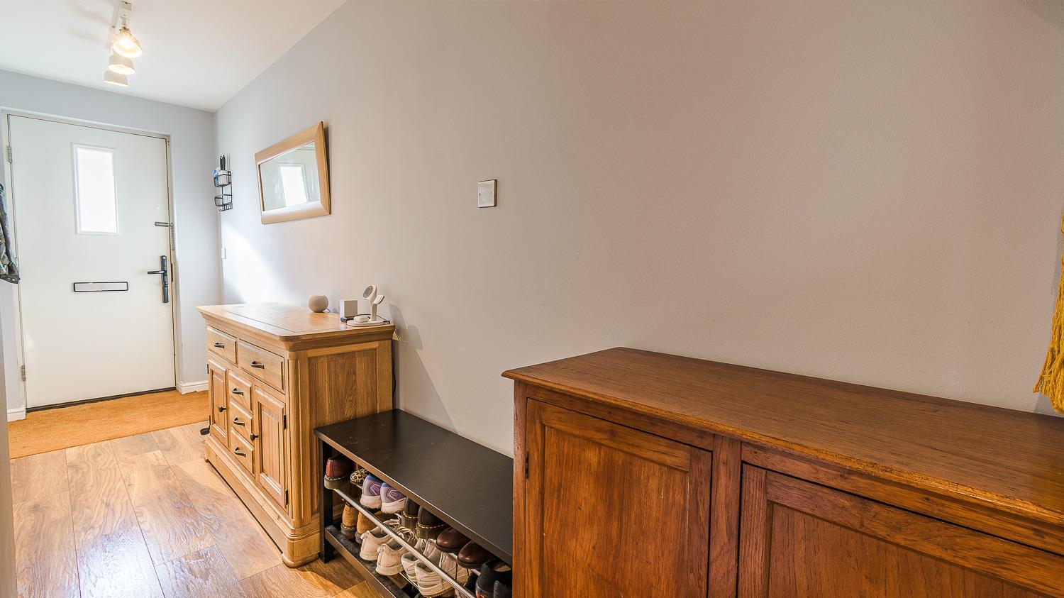 Flower beds. Shrubs. Stone chippings. Garage to rear. Gated side access. Enter property via double glazed opaque glass composite front door.