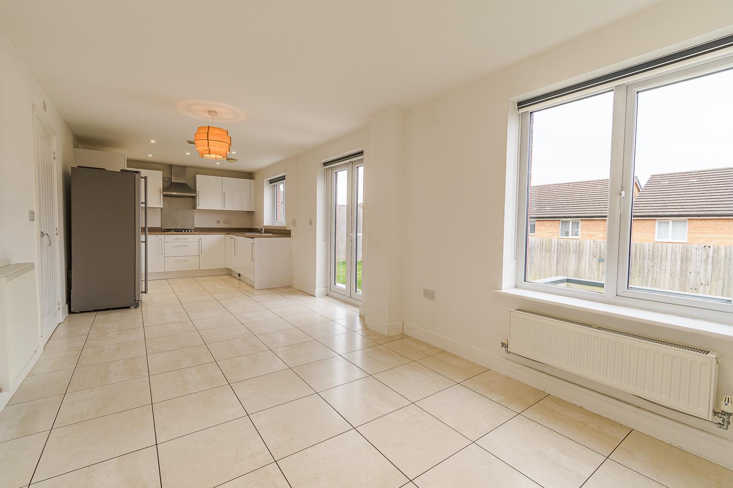 Smoothly plastered ceiling, smoothly plastered walls. Fitted carpet flooring. Wall mounted radiators. UPVC double glazed window to the front elevation. Wood panelled double doors leading through to the kitchen / dining. Wood panelled door leading to the entrance hallway.