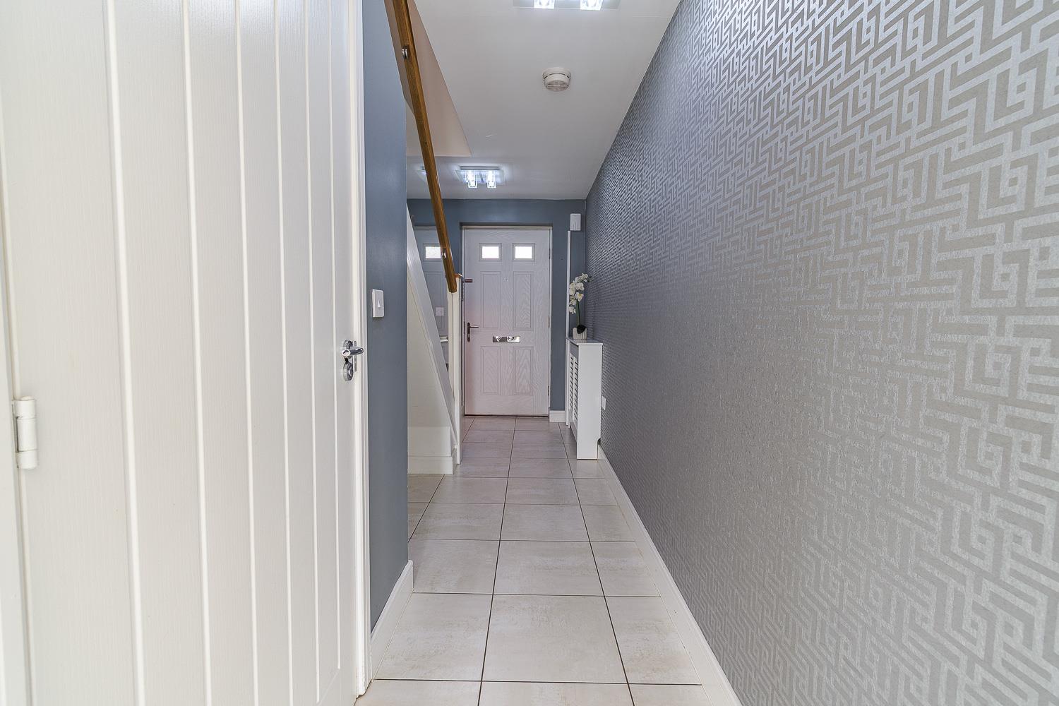 Double driveway with access via an up and over door to a garage. Laid to lawn. Planted established shrubbery. Side access to rear. Composite front door leading to the entrance hallway.