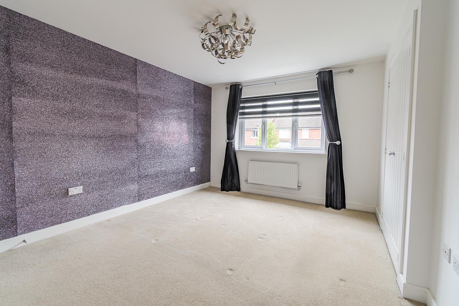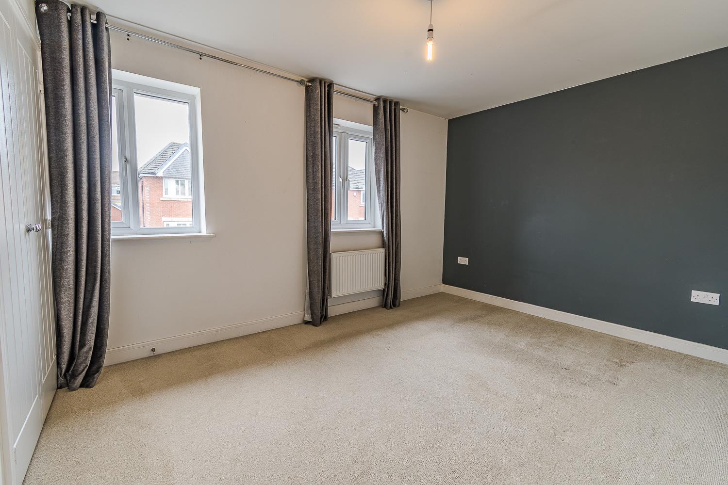 Smoothly plastered ceiling, smoothly plastered walls. Fitted carpet flooring. Wall mounted radiator. UPVC double glazed window to the front elevation. Built-in double wardrobes. Over stairs storage. Wood panel door leading to an en-suite shower room.