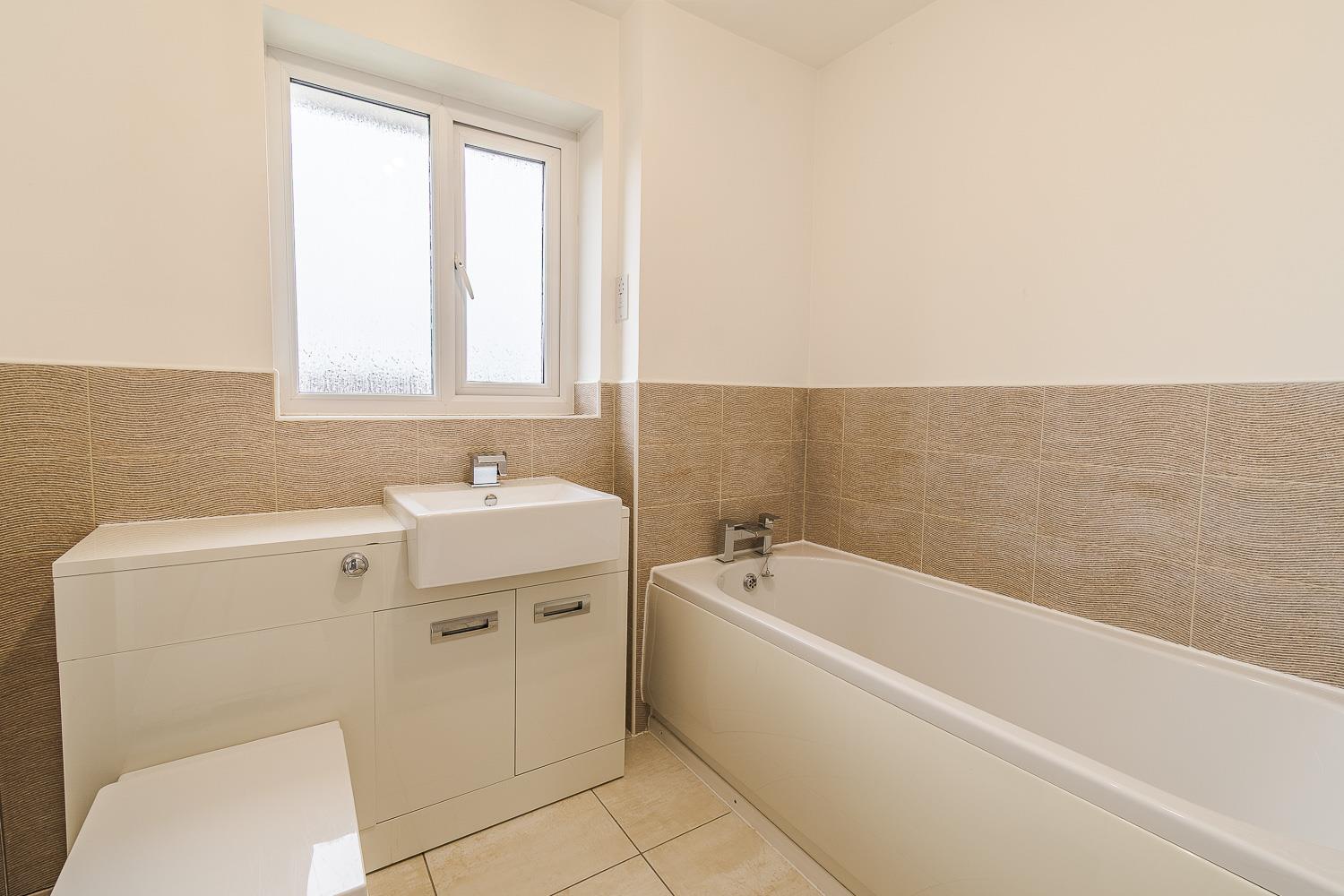 Smoothly plastered ceiling with vent extractor, smoothly plastered walls. Ceramic tiled flooring. Porcelain tiled splashbacks. Vanity wash hand basin and WC, bath. Wall mounted radiator. UPVC double glazed window with obscured glass to the rear elevation.