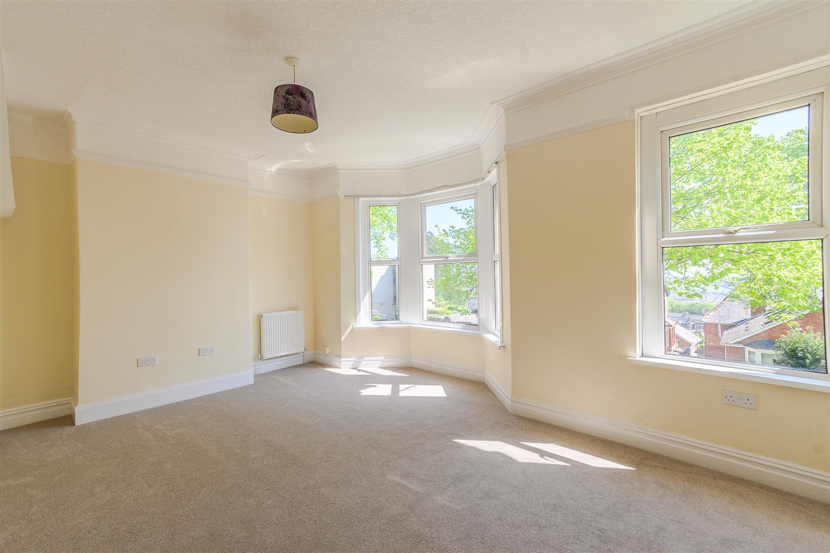 Decorative plastered ceiling with coving and picture rails; plastered walls; fitted carpet. UPVC double-glazed bay window with sea views across the Bristol Channel; wall-mounted radiator.