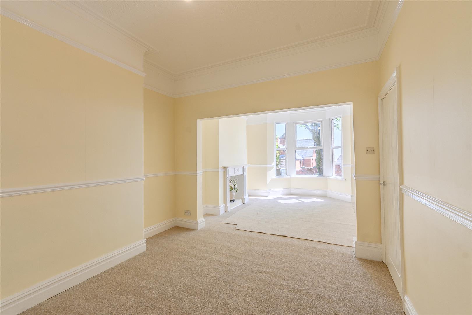 Papered ceiling with coving; plastered walls; fitted carpet; UPVC double-glazed side window; wall-mounted radiator.