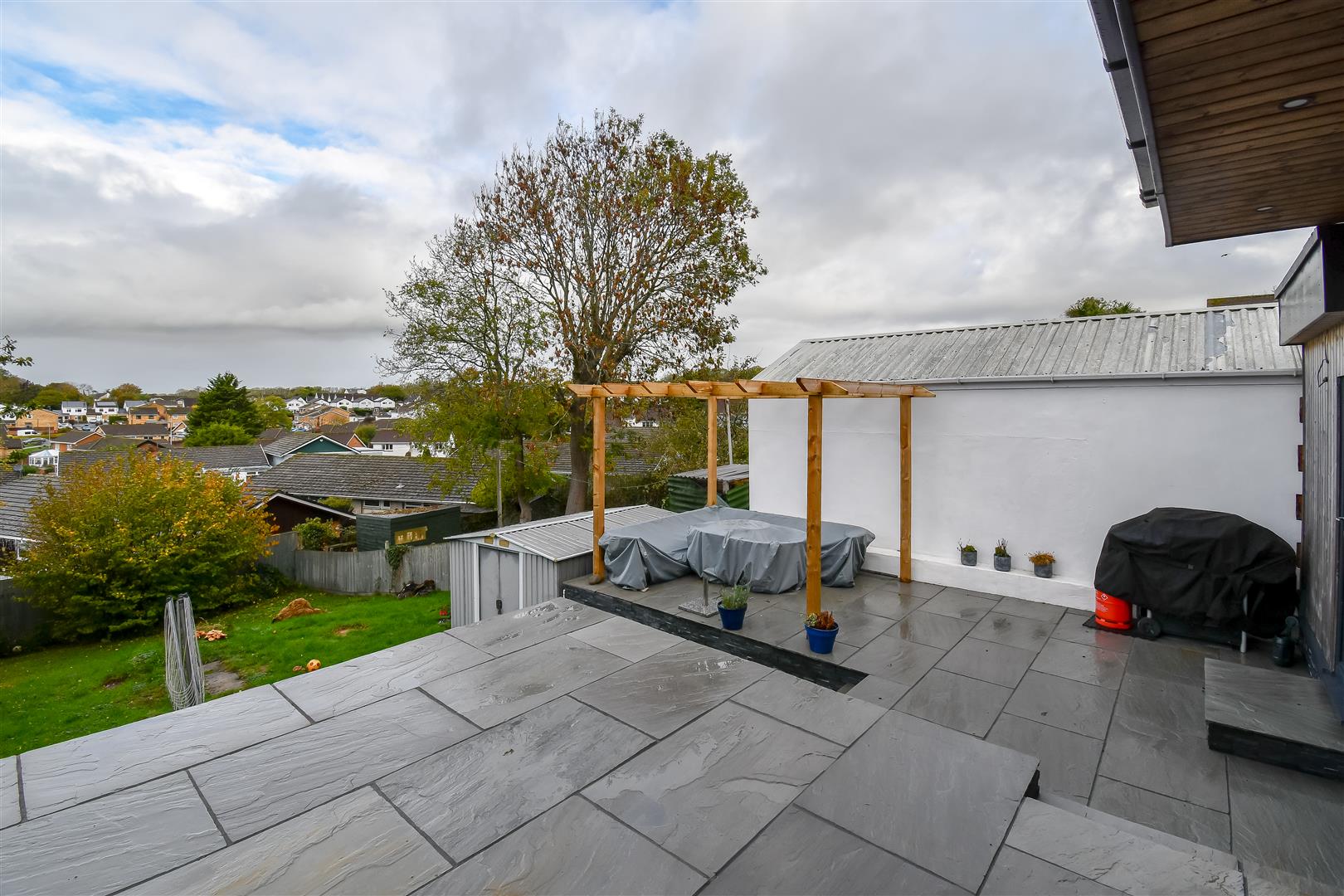 Enclosed rear garden recently landscaped by the current owners with raised paved patio area leading from the kitchen / dining area with far reaching vale views. Steps descend to a further paved patio area with pergola p[providing ample room for garden furniture. Laid to lawn. Planted established shrubbery. Access to garage.