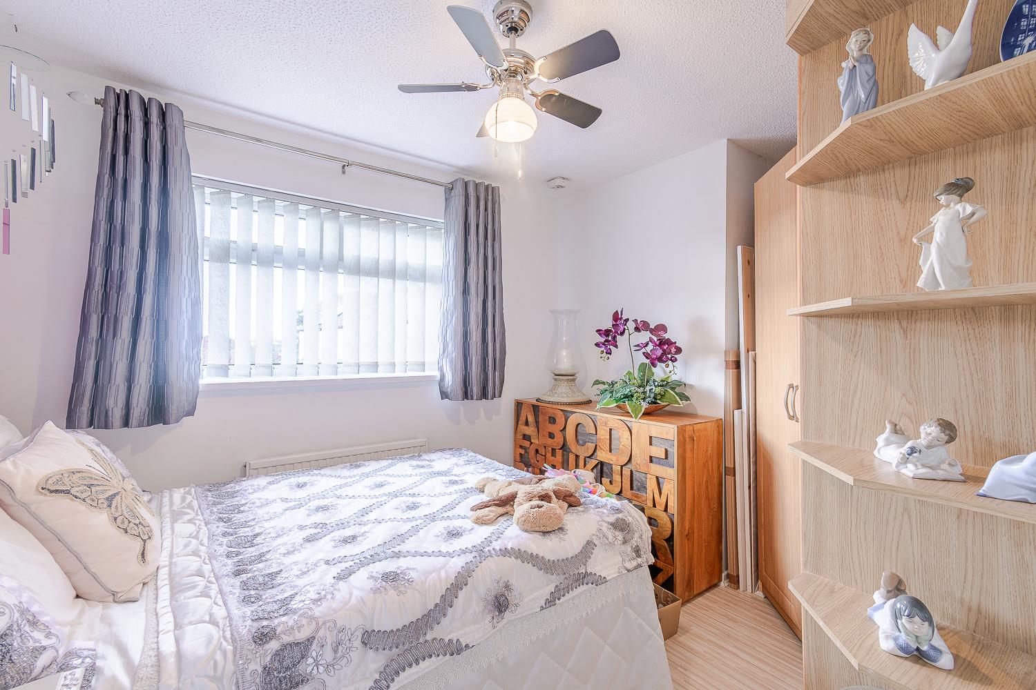 Textured ceiling, plastered walls, wood-effect flooring. Fitted wardrobe; UPVC double-glazed window overlooking rear garden.