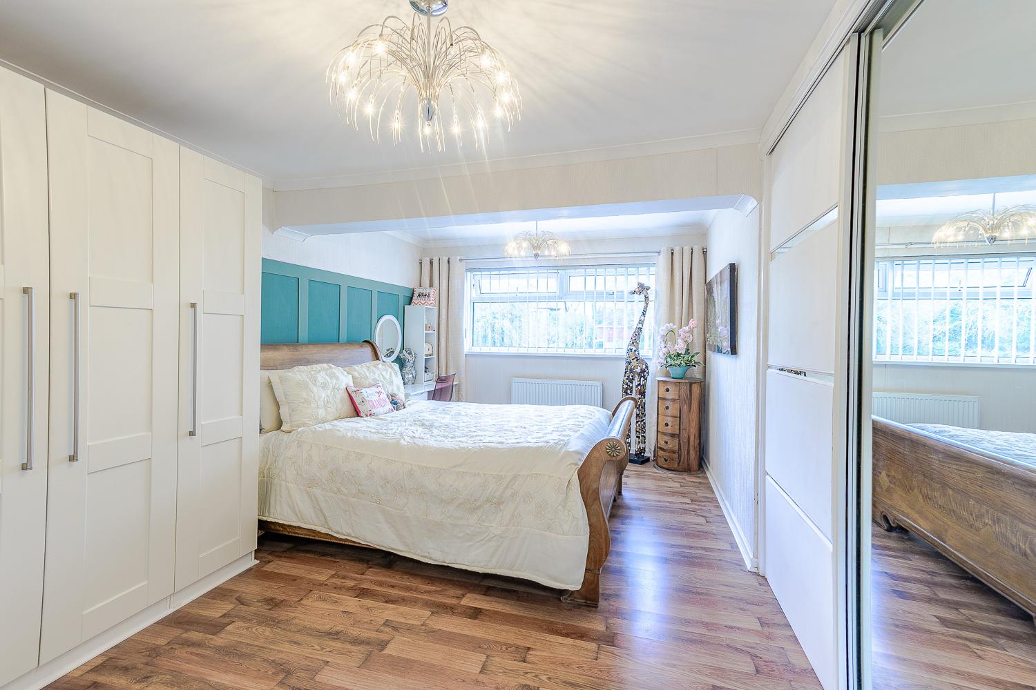 Plastered ceiling with coving; papered walls; wood-effect flooring. UPVC double-glazed window to front aspect. Fitted wardrobes surrounding.