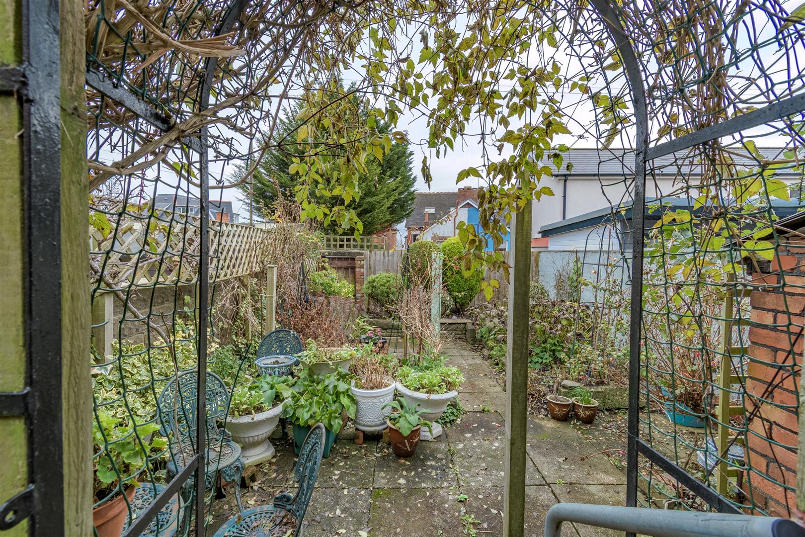 Enclosed rear garden, with paved patio area and pathway. Planted established shrubbery. Rear access to Lane. Access to outside storage building. Feather edge fencing.