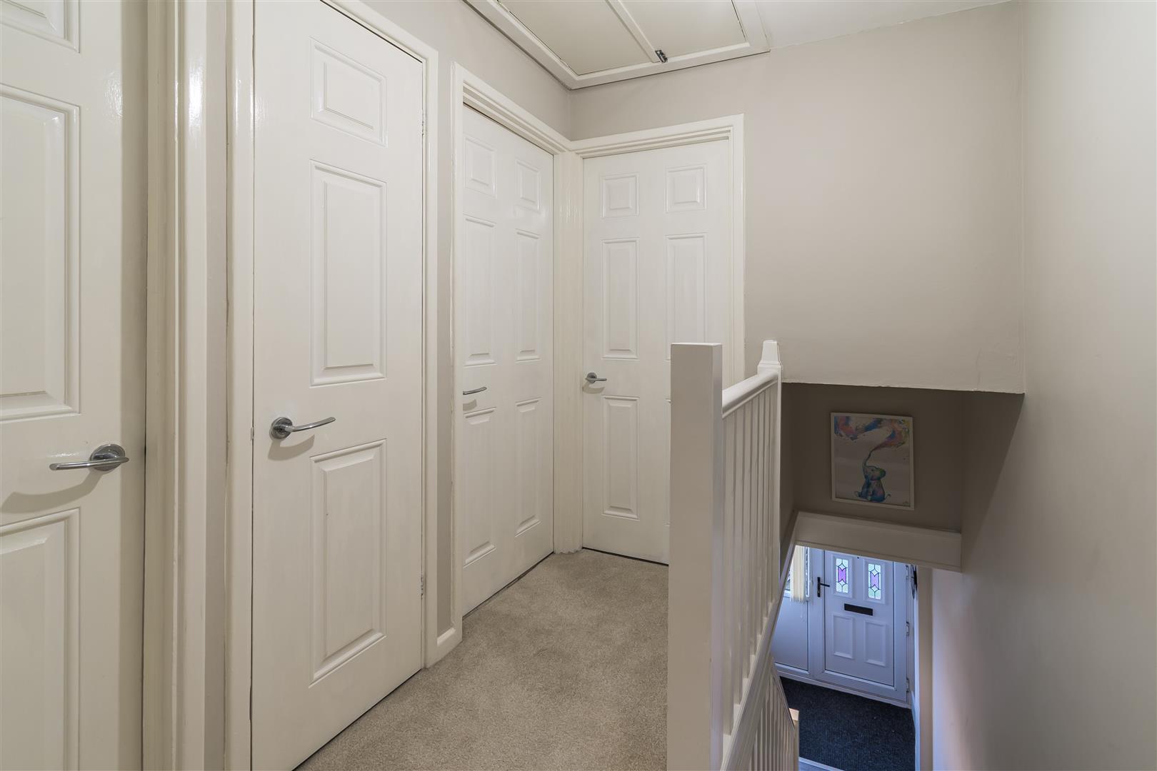 Smoothly plastered ceiling with loft access. Smoothly plastered walls. Fitted carpet flooring. UPVC double glazed window to the side elevation. Wood panelled doors leading to bedrooms one, two and bedroom three. A further wood panelled door leading to the family bathroom. Fitted carpet staircase rising from the ground floor. Access to airing cupboard with wall mounted combination boiler.